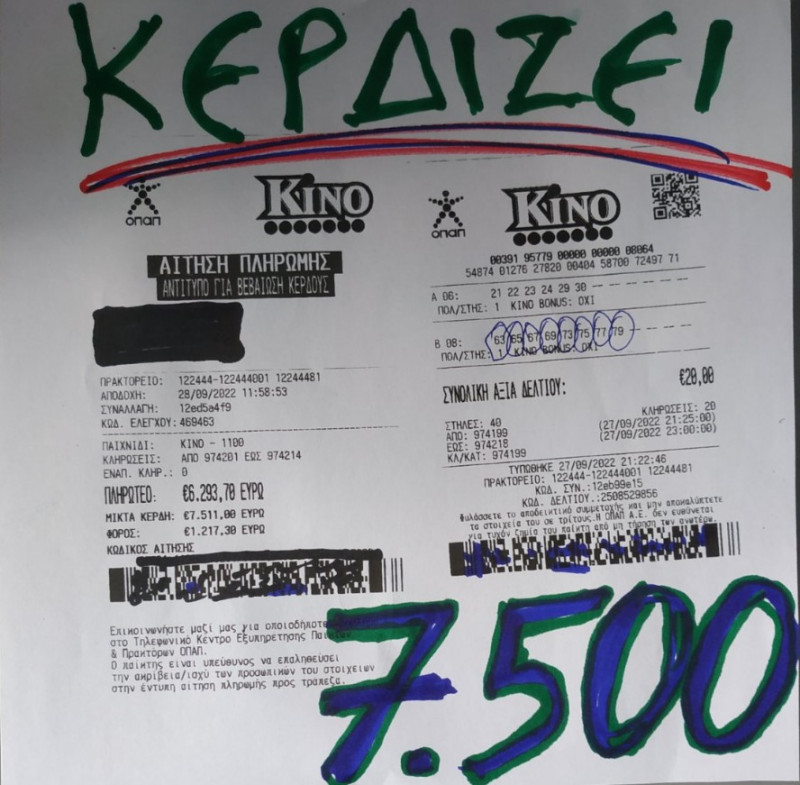 Αμφιλοχία: Ένας τυχερός παίκτης ΚΙΝΟ κέρδισε 7.500 ευρώ (Photo)