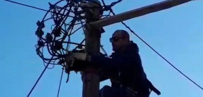 Αμφιλοχία: Eπιχείρηση απεγκλωβισμού γάτας από κολώνα της Δ.Ε.Η. (Βίντεο)