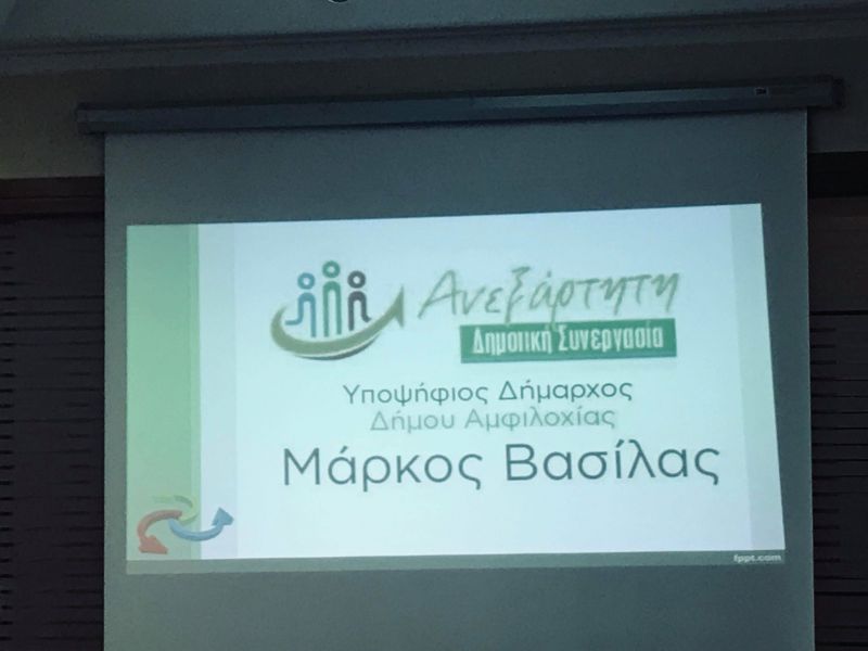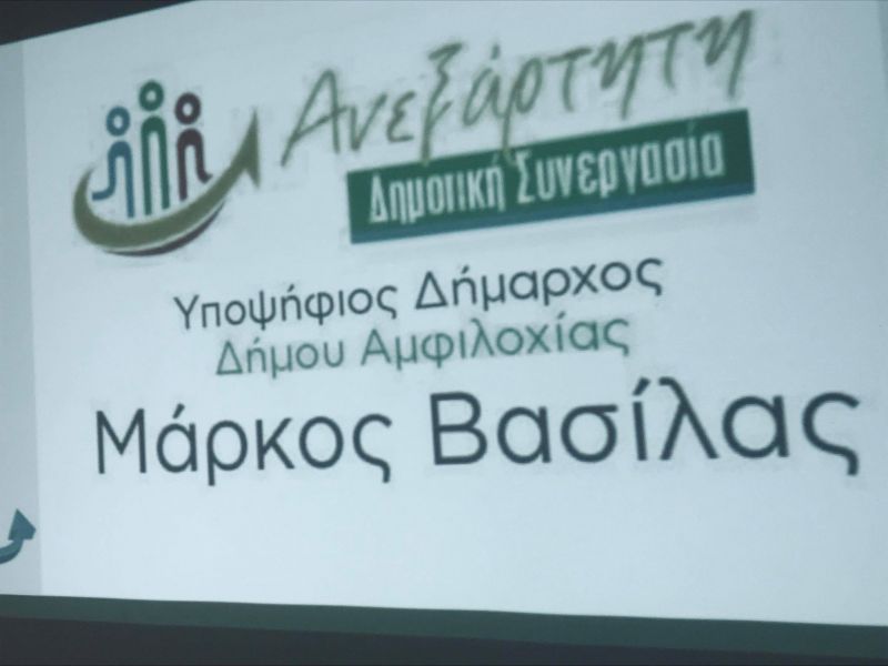 Σε εξέλιξη βρίσκεται αυτή την ώρα η παρουσίαση της υποψηφιότητας του Μάρκου Βασίλα, στην αίθουσα του ξενοδοχείου «ΑΜΒΡΑΚΙΑ», στην Αμφιλοχία.