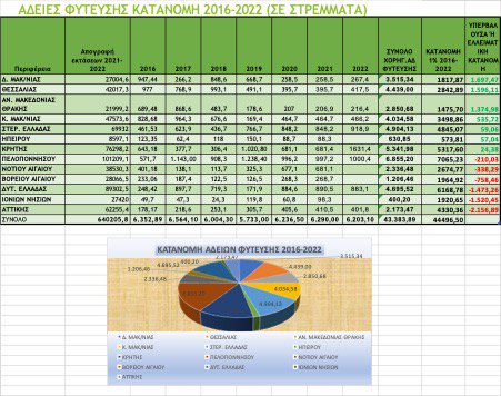 Από το 2016 στη χώρα μας έχουν χορηγηθεί 43.383,89 νέες Άδειες Φύτευσης, παραμένει όμως μέχρι σήμερα άγνωστο, το ποσοστό πραγματικών φυτεύσεων (εκτός του 2016 ποσοστό που ανερχόταν στο 61% περίπου), λαμβανομένου υπόψιν και του ότι η υποχρέωση φύτευσης του αμπελώνα μπορεί να πραγματοποιηθεί έως και τρία χρόνια μετά τη χορήγηση της Άδειας Φύτευσης (με εξαίρεση τα έτη της πανδημίας).