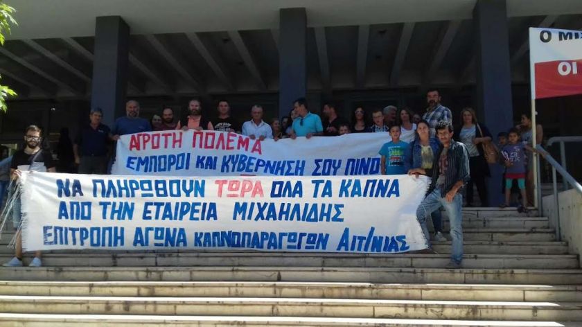 Για δεύτερη συνεχή φορά μέσα σε διάστημα λίγων ημερών καπνοπαραγωγοί από την περιοχή της Μακρυνείας που για πάνω από 6 μήνες είναι απλήρωτοι από την εταιρία (Καπνική Μιχαηλίδης ΑΕ) βρεθήκαν έξω από τα Δικαστήρια της Θεσσαλονίκης διεκδικώντας να αποδοθούν το σύνολο όλων των χρωστούμενων στους καπνοπαραγωγούς από την εταιρία. Για τους καπνοπαραγωγούς αυτούς (γύρω στα 100 άτομα) τίθεται πραγματικά θέμα επιβίωσης.
