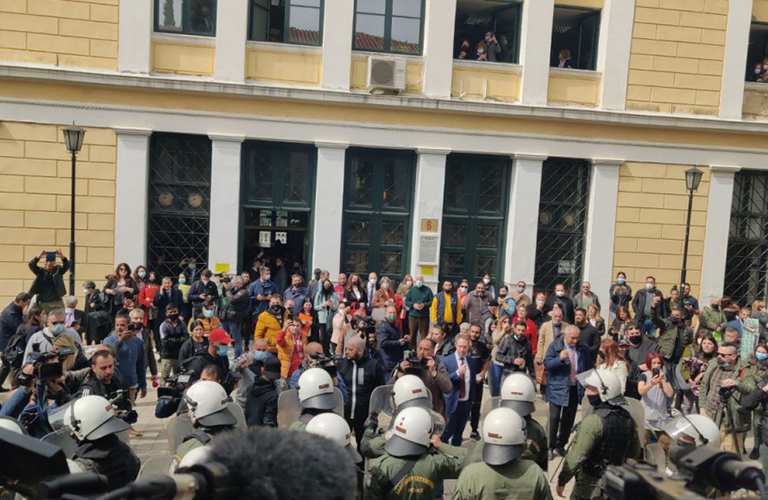 Διμοιρίες των ΜΑΤ και μονάδες της Ο.Π.Κ.Ε. είχαν αποκλείσει την είσοδο στο κτίριο 9 όπου απολογείται η 33χρονη, ενώ σύμφωνα με πληροφορίες σημειώθηκαν σπρωξίματα την ώρα που η κατηγορούμενη οδηγούνταν προς την ανακρίτρια.
