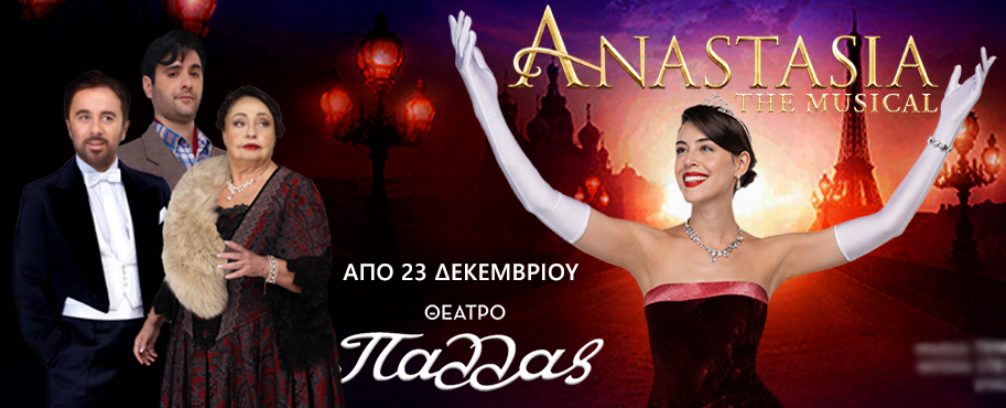 Anastasia the musical , η συγκλονιστική ιστορία της πριγκίπισσας Αναστασίας, βασισμένη στην αγαπημένη ταινία κινουμένων σχεδίων του 1997, έρχεται αυτά τα Χριστούγεννα στη σκηνή του Παλλάς!
