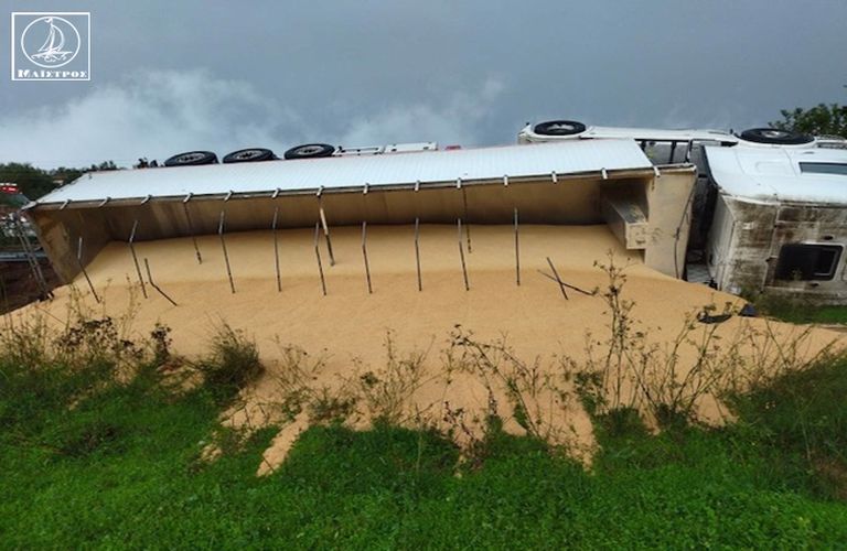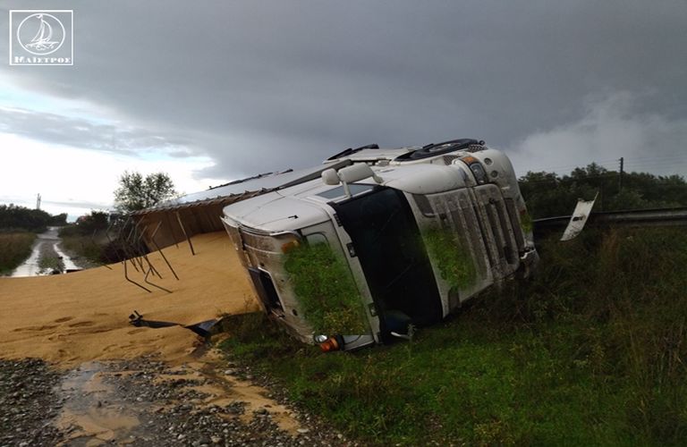 Το όχημα με κατεύθυνση προς Αγρίνιο φορτωμένο με σόγια, εξετράπη της πορείας του και ανετράπη δεξιά του οδοστρώματος. Από το τροχαίο δεν υπήρξε τραυματισμός παρά μόνο υλικές ζημιές.