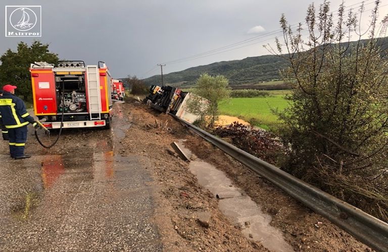 Τροχαίο ατύχημα με ανατροπή νταλίκας σημειώθηκε στις 11:30 το πρωί της Τρίτης 23 Νοεμβρίου, στο 16ο χιλιόμετρο της Εθνικής Οδού Αμφιλοχίας – Αγρινίου.