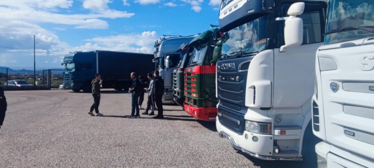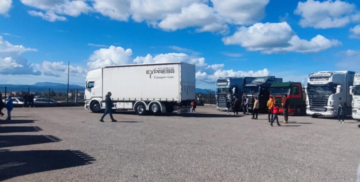 Ο χώρος της εκδήλωσης γέμισε από φορτηγά.