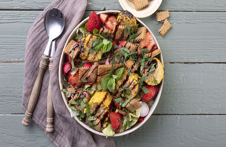 Ανοιξιάτικη σαλάτα με κράκερ βαλσάμικου