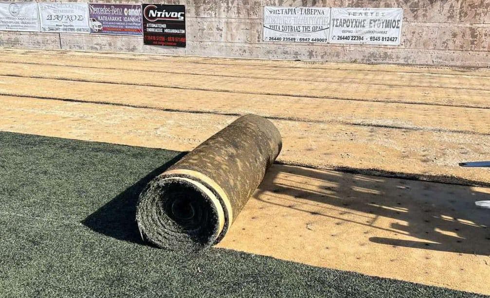 Aντικατάσταση και τοποθέτηση συνθετικού χλοοτάπητα στο Δημοτικό Γήπεδο Θέρμου (Photos)