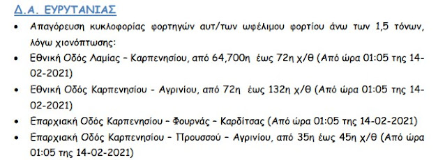 Αντιολισθητικές αλυσίδες στην Ε.Ο. Αγρινίου-Καρπενησίου και Ε.Ο. Αγρινίου-Προυσού