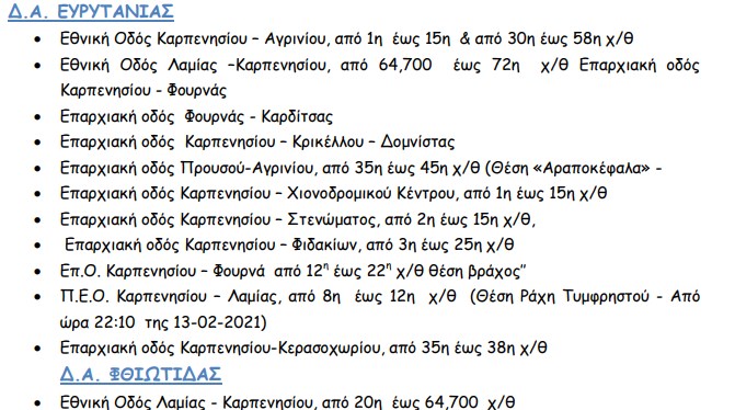 Διακοπές κυκλοφορίας – Δυσχέρειες λόγω καιρικών φαινομένων 14-02-2021, 07:30