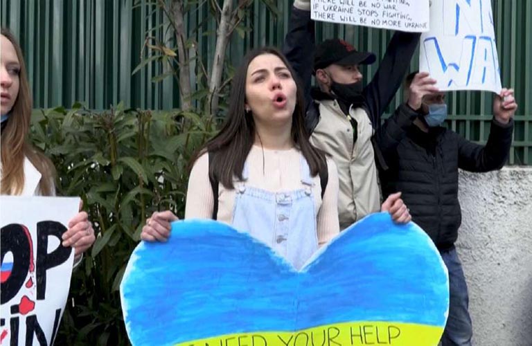 Αντιπολεμική διαδήλωση πραγματοποιήθηκε έξω από την Ρωσική Πρεσβεία της Αθήνας, με την συμμετοχή Ελλήνων και Ουκρανών πολιτών.