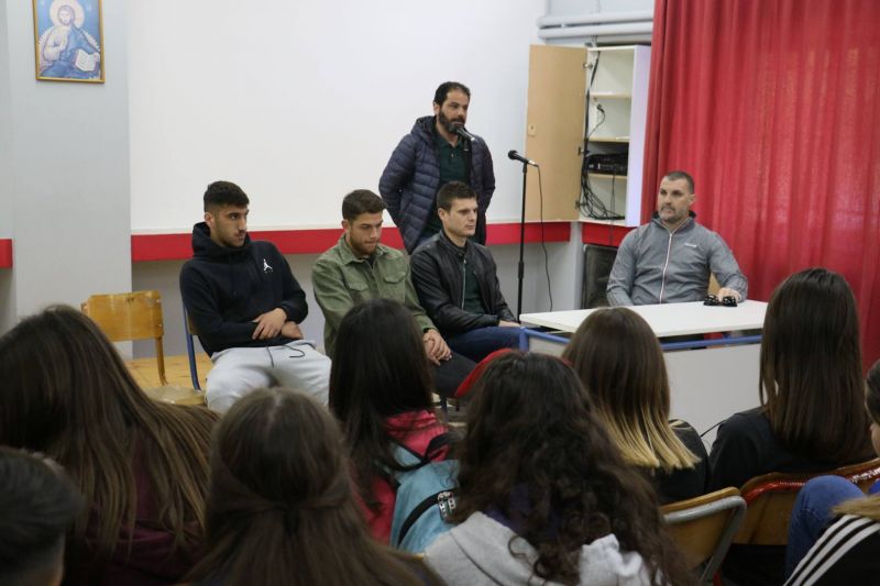 Αντιπροσωπεία των «κυανοκίτρινων» αποτελούμε από τον τεχνικό διευθυντή της ομάδας Μάκη Μπελεβώνη, τον γενικό αρχηγό Χρήστο Κουτσοσπύρο και τους Τάσο Τσοκάνη, Ενέα Μιχάι, Γιώργο Λιάβα, επισκέφθηκαν το 6ο Γυμνάσιο Αγρινίου και συμμετείχαν σε εκδήλωση κατά της βίας. Ολοι τους στάθηκαν πως το φαινόμενο πρέπει να εξαλειφθεί, ενώ απάντησαν και σε ερωτήματα των μαθητών.