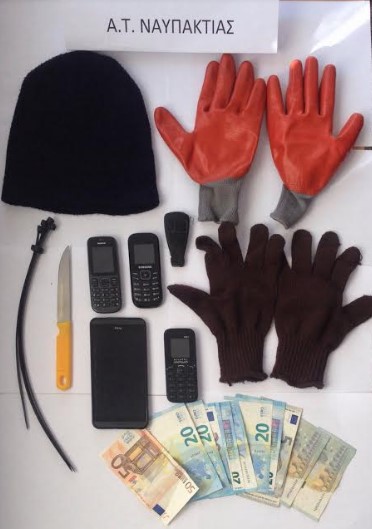 Σε έρευνα που ακολούθησε στο αυτοκίνητο των δυο δραστών βρέθηκαν και κατασχέθηκαν τέσσερα κινητά τηλεφωνά, το χρηματικό ποσό των 240 ευρώ, ένα ζευγάρι μάλλινα γάντια, ένας μάλλινος σκούφος, ένα μαχαίρι και τέσσερα πλαστικά δεματικά, ενώ από των έλεγχο των στοιχείων του 45χρονου προέκυψε ότι σε βάρος του εκκρεμούσε ένταλμα σύλληψης του Ανακριτή Αγρινίου για απλή συνέργεια σε κατοχή και μεταφορά 161 κιλών κάνναβης πράξη που είχε συμβεί τον Απρίλιο του 2012 στην Αμφιλοχία.