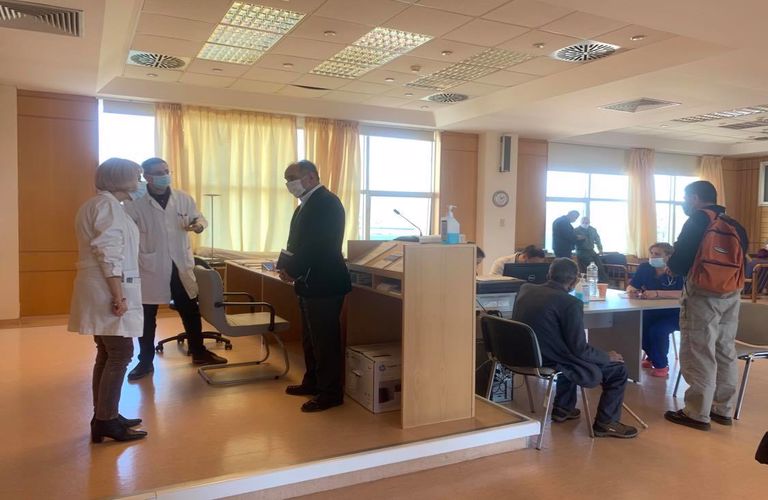 Το κλιμάκιο συναντήθηκε με τον διοικητή του νοσοκομείου Χρήστο Χριστόπουλο , την πρόεδρο των εργαζομένων Μαλβίνα Κέρερε και όλα τα μέλη της διοίκησης του σωματείου, τον αντιπρόεδρο της επιτροπής λοιμώξεων γιατρό Καστανά Χρήστο, γιατρούς, νοσηλευτές αλλά και απλούς εργαζόμενους.