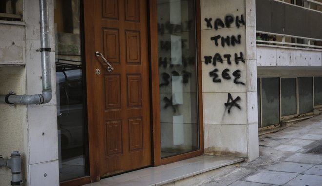Στην είσοδο της πολυκατοικίας από τη μια έγραψαν την λέξη «κωλόπαιδο» και από κάτω «Ζακ 22/09» ενώ από την άλλη μεριά έγραψαν το απειλητικό μήνυμα «Χάρη την πάτησες».