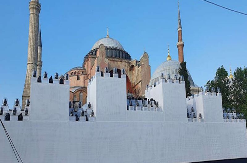 Απίστευτο τουρκικό σόου με ψεύτικο τείχος έξω από την Αγία Σοφία