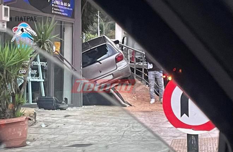 Απίστευτο τροχαίο στο κέντρο της Πάτρας: Αυτoκίνητο «σκαρφάλωσε» σε ράμπα