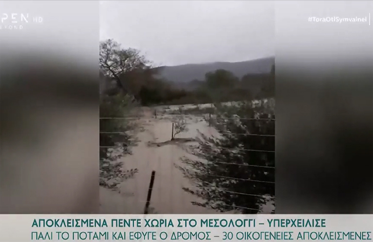 Αποκλεισμένα από χθες πέντε χωριά στο Μεσολόγγι (Video)