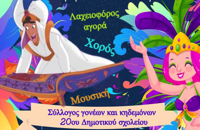 Με χαρά σας προσκαλούμε στο αποκριάτικο πάρτι που διοργανώνει ο Σύλλογος Γονέων και Κηδεμόνων του 20ου Δημοτικού Σχολείου.