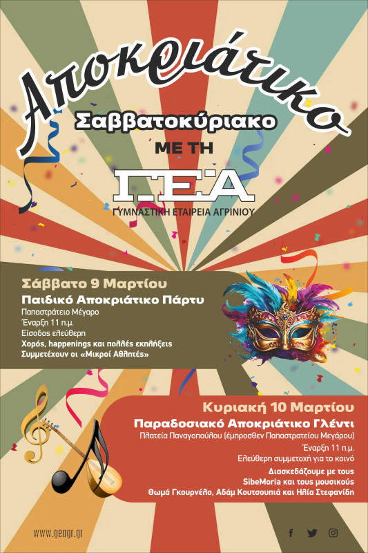 Αποκριάτικο Σαββατοκύριακο με τη Γυμναστική Εταιρεία Αγρινίου – Στις 9 και 10 Μαρτίου με ελεύθερη συμμετοχή για όλους