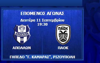 Συντονιστείτε, σήμερα Δευτέρα, 11 Σεπτεμβρίου, στις 20:30 στην αθλητική συχνότητα της Αιτωλοακαρνανίας στους 93,7 στα fm κι ακούστε σε ζωντανή μετάδοση το παιχνίδι Απόλλων Σμύρνης – Π.Α.Ο.Κ.