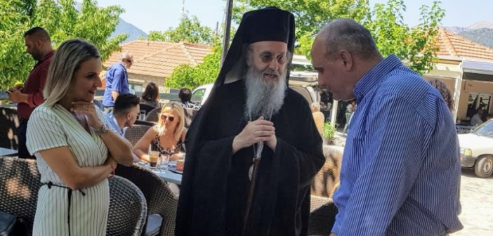 Μετά τήν θεία Λειτουργία ὁ Σεβασμιώτατος, συνοδευόμενος ἀπό τούς Ἱερεῖς, ἐπισκέφθηκε τήν γραφικότατη πλατεία τοῦ χωριοῦ καί χαιρέτησε τούς κατοίκους καί παραθεριστές καί συνομίλησε μαζί τους, δίνοντας εὐλογία στά παιδιά.