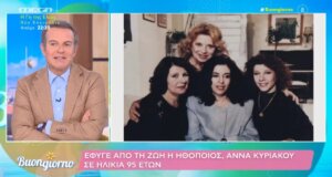 Η Άννα Κυριακού η θρυλική «Θεία Μπεμπέκα» από τις «Τρεις Χάριτες» σε ηλικία 95 ετών άφησε την τελευταία της πνοή.