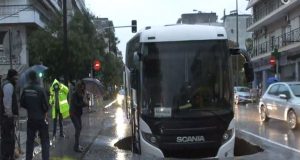 Εικόνα σοκ στη Θεσσαλονίκη όπου υποχώρησε, λόγω της κακοκαιρίας «Μπάλλος», ο δρόμος στην Εθνικής Αντιστάσεως και έπεσε μέσα το μπροστινό μέρος ενός λεωφορείου. Σύμφωνα με πληροφορίες, το λεωφορείο, που είναι μισθωμένο από...