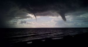 Όχι ένας αλλά δύο υδροσίφωνες σχηματίστηκαν ταυτόχρονα κοντά στα Κύθηρα το πρωί της Δευτέρας, δημιουργώντας μία εντυπωσιακή εικόνα. Το σκούρο σύννεφο σκεπάζει τον ουρανό σιγά-σιγά και στην άκρη...