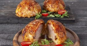 Συστατικά 420 γρ. φύλλο σφολιάτας 80 γρ. κέτσαπ 100 γρ. τσένταρ, τριμμένο 1 ντομάτα 40 γρ. μπέικον, ψημένο 8 φέτες τσένταρ 4 μπιφτέκια, μοσχαρίσια, ψημένα (120...