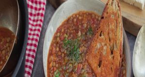 ΥΛΙΚΑ Για το πιάτο 400 γρ. σούπα φακές 5 γρ. κρεμμύδι φρέσκο, το πράσινο μέρος, ψιλοκομμένο ελαιόλαδο πιπέρι μαύρο, φρέσκο, τριμμένο Για τη σούπα φακές...