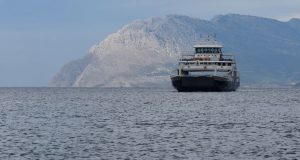 Το πλοίο «Κωνσταντίνος.Κ» εκτελώντας το δρομολόγιο από το Αντίρριο στο Ρίο. Πίσω δεξιά της πλώρης στις υπώρειες της Βαράσοβας βρίσκεται η αρχαία Χάλκεια. Η Ομηρική ναυτική...
