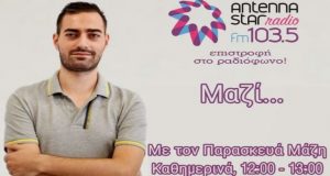 Κάθε μεσημέρι στις 12 θα είμαστε «Μαζί»… από τη συχνότητα του Antenna Star FM στους 103.5 με τα τελευταία νέα από το Αγρίνιο, την Αιτωλοακαρνανία, τη Δυτική...