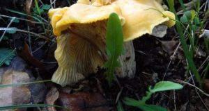 Μανιτάρια του βελανιδοδάσους Κανθαρέλλα Cantharellus cibarius ή Κιτρινούσκα, Καΐτσα, Γαλέτα, Νερατζάκι, Κανθαρέλλα ή νεραντζάκι όπως είναι η λαϊκή ονομασία του γιατί τη στιγμή που ξεπροβάλει από...