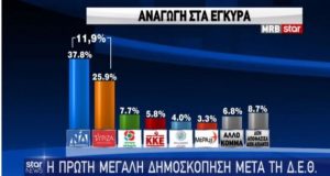Με διαφορά 11,9%, στην αναγωγή επί των εγκύρων ψηφοδελτίων, προηγείται η ΝΔ του ΣΥΡΙΖΑ στην πρόθεση ψήφου, στη δημοσκόπηση της MRB, τα αποτελέσματα της οποίας παρουσιάσθηκαν στο...