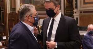 Διάλογο σε ιδιαίτερα έντονο ύφος είχαν ο Πρωθυπουργός, Κυριάκος Μητσοτάκης, με τον ΓΓ του ΚΚΕ, Δημήτρη Κουτσούμπα στην είσοδο της Μητρόπολης Αθηνών, αμέσως μετά την τέλεση της...