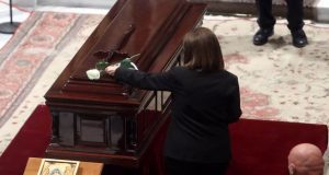 Αίσθηση και συγκίνηση προκάλεσε η κίνηση της Προέδρου της Δημοκρατίας, Κατερίνας Σακελλαροπούλου όταν έφτασε στην Μητρόπολη Αθηνών για την τελετή αποχαιρετισμού στον Μίκη Θεοδωράκη. Η κα...