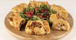 Συστατικά 300 γρ. κοτόπουλο, ψημένο 5 λιαστές ντομάτες 10 ελιές, καλαμών 1 κ.γ. ρίγανη, ξερή 1 κ.γ. μπούκοβο 100 γρ. καλαμπόκι, σε κονσέρβα 200 γρ. τσένταρ,...
