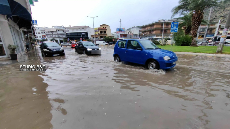 Αργολίδα: Πλημύρισαν δρόμοι, κεντρικά σημεία μετατράπηκαν σε λίμνες (Video)