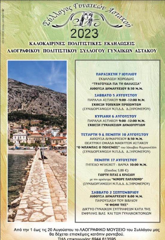 Ο Πολιτιστικός Σύλλογος Γυναικών Αστακού διοργανώνει καλοκαιρινές πολιτιστικές εκδηλώσεις για το 2023