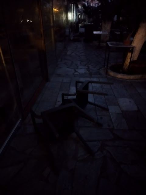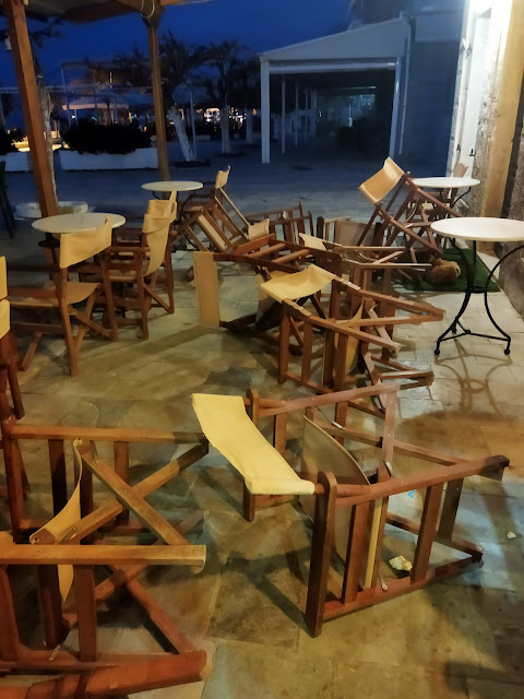 «Έλεος βρε παιδιά, τι σας φταίει η περιουσία του κάθε ανθρώπου η επιχείρηση του καθενός και αρχίζετε να κάνετε αυτό που είδαν το μάτια μου σήμερα σε μαγαζιά της παραλίας τραπέζια κάτω καρέκλες γλάστρες ριγμένες ξεριζωμένα τα λουλούδια σπασμένες γλάστρες έτσι τι νομίζουν ότι κάνουν τι φταίει ο καθένας άνθρωπος που βγάζει το ψωμί του…