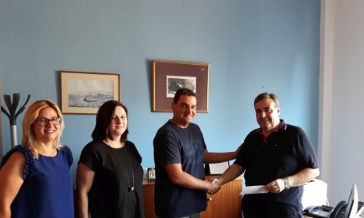 Ο Αντιδήμαρχος Κοινωνικής Προστασίας και Δημόσιας Υγείας Κώστας Καλαντζής παρέλαβε σήμερα από τον κ. Γιώργο Αθανασόπουλο, μέλος του μουσικού σχήματος «Άτροπον», μέρος των εσόδων από συναυλία που πραγματοποιήθηκε την 1η Σεπτεμβρίου 2019 στον κινηματογράφο “Ελληνίς” για τη στήριξη του Κοινωνικού Ιατρείου του Δήμου Αγρινίου.