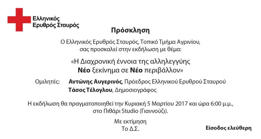 Ειδήσεις Αυγερινός και Τέλογλου στο Αγρίνιο, σε εκδήλωση για την Αλληλεγγύη από το τοπικό τμήμα του Ερυθρού Σταυρού 2 Μαρ 2017 AgrinioTimes Share Tweet ☆ Ακολουθήστε μας στο Google News Σχετικά θέματα: Advertisement Τελευταία νέα →26 Φεβ 2026 01:23Δώρα Ναστούλη – Γυναικοκτονία στο Αγρίνιο: Η Εισαγγελέας πρότεινε την ενοχή του 30χρονου26 Φεβ 2026 01:05Ο Καιρός (26/02): Ηλιοφάνεια στο Αγρίνιο, έως 17 βαθμούς Κελσίου η θερμοκρασία26 Φεβ 2026 00:41Μεσολόγγι: Πρόγραμμα Εορτασμού 200ης Επετείου της Εξόδου της Ηρωικής Φρουράς των Ελεύθερων Πολιορκημένων25 Φεβ 2026 21:58Πεζόδρομος Καραϊσκάκη: ΕΛ.ΑΣ. και Ε.Κ.Α.Β. κινητοποιήθηκαν μετά από πληροφορία για πληγωμένο άτομο25 Φεβ 2026 19:48Stoiximan SL1 – Πάρης Τσελεπίδης: «Δεν έχει γίνει η παραμικρή συζήτηση Αναστασίου-Παναιτωλικού για του χρόνου»25 Φεβ 2026 19:36Επιμελητήριο Αιτωλοακαρνανίας: Προσωρινή αναστολή λειτουργίας για την Υπηρεσία Μιας Στάσης25 Φεβ 2026 18:51Διακοπή κυκλοφορίας οχημάτων στην παράπλευρη Ε.Ο. Αγρινίου – Εμπεσού25 Φεβ 2026 16:22Κώστας Πιστιόλας: «Στοχευμένα ερωτήματα στη Συνεδρίαση Λογοδοσίας της Δημοτικής Αρχής Αγρινίου»25 Φεβ 2026 14:40Εφετείο Αγρινίου: Η ποινή που επιβλήθηκε στον οδηγό για τον θάνατο του Άκη Κάκου και της Στεφανίας Μουλαρά25 Φεβ 2026 13:14Αγρίνιο: Διάσωση σκύλου στα Άη-Βασιλιώτικα μετά από επιχείρηση Αστυνομίας και Πυροσβεστικής