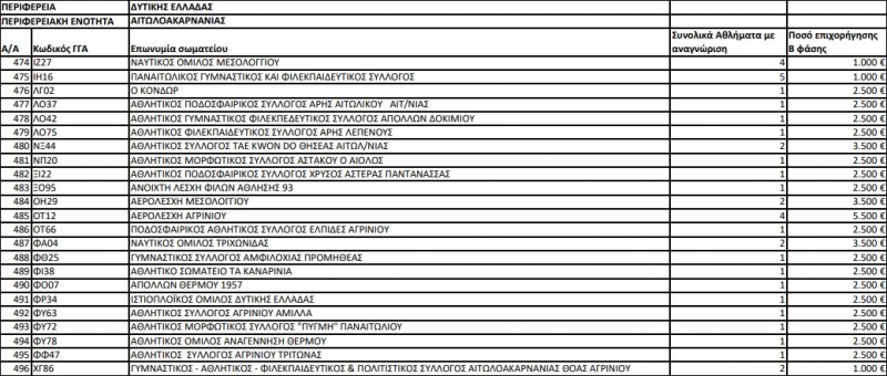 Αυτά είναι τα χρήματα που… «έρχονται» σε ερασιτεχνικά σωματεία της Αιτωλ/νίας (Πίνακας)