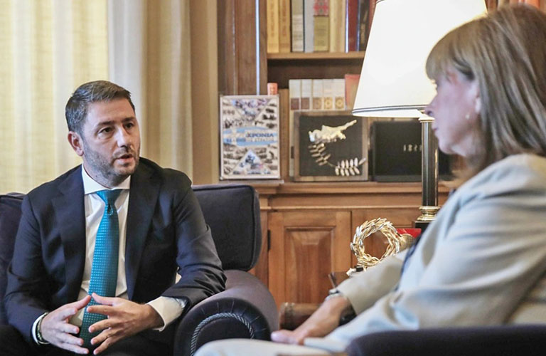 Στο Προεδρικό Μέγαρο βρέθηκε ακριβώς στις 18:30 ο πρόεδρος του ΠΑΣΟΚ/ΚΙΝΑΛ, Νίκος Ανδρουλάκης προκειμένου να παραλάβει την τρίτη διερευνητική εντολή από την Πρόεδρο της Δημοκρατίας, Κατερίνα Σακελλαροπούλου....