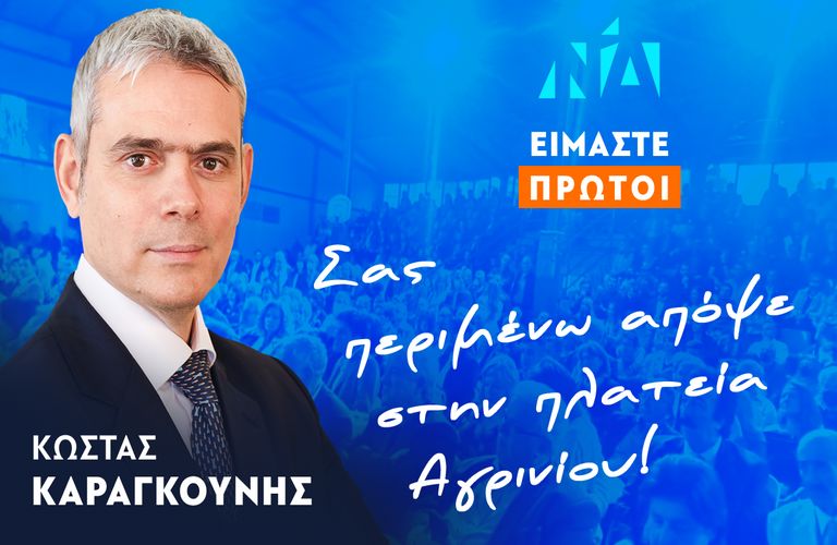 Αγρίνιο: Απόψε η κεντρική προεκλογική ομιλία του Κώστα Καραγκούνη στην Πλατεία Δημοκρατίας Ακολουθεί το μήνυμα του υποψήφιου Βουλευτή Αιτωλοακαρνανίας με τη Νέα Δημοκρατία, κου. Κωνσταντίνου Καραγκούνη:...
