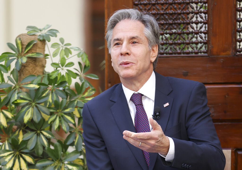 Ο Αμερικανός Υπουργός Εξωτερικών Άντονι Μπλίνκεν κατά την έναρξη της συνάντησης του με τον Τούρκο ομόλογό του Χακάν Φιντάν στην Ουάσινγκτον στο πλαίσιο του Στρατηγικού Μηχανισμού...