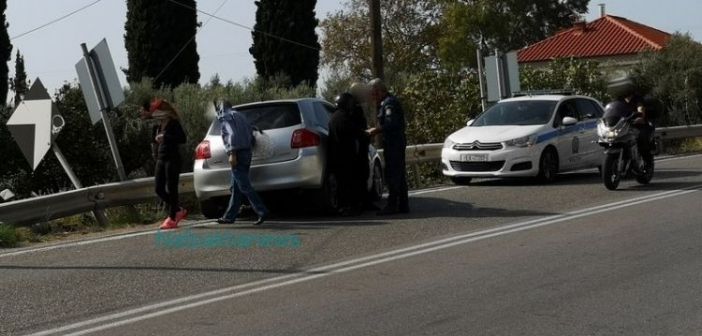 Με σκοπό να «φυλάξει» την οδηγό του δικύκλου που επιχείρησε επικίνδυνη αναστροφή επάνω στην στροφή μετά το στάδιο Ναυπάκτου, ο διερχόμενος οδηγός του αυτοκινήτου που κινείται στο ρεύμα εξόδου της πόλης με κατεύθυνση δυτικά,έριξε το αυτοκίνητο επάνω στις προστατευτικές μπάρες του δρόμου στην αριστερή πλευρά.