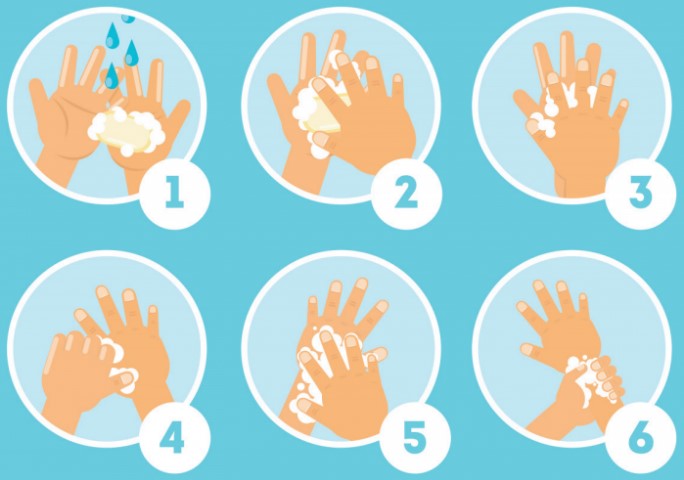 Πρέπει να αφήνουμε αρχικά τα χέρια μας στο τρεχούμενο νερό και στη συνέχεια να βάζουμε το σαπούνι και να πλένουμε καλά όλα τα σημεία (δάχτυλα, παλάμη κ.λπ.) για διάστημα τουλάχιστον 20 δευτερολέπτων, και σε περίπτωση που δεν πλενόμαστε στο σπίτι, να σκουπιζόμαστε με χαρτί μίας χρήσης και επίσης να χρησιμοποιούμε κάποιο χαρτί για να κλείσουμε τη βρύση.