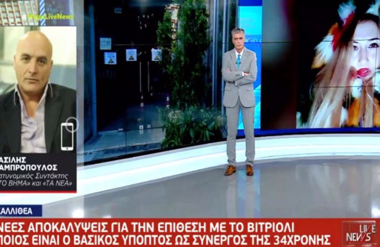 Σύμφωνα με όσα ανέφερε ο αστυνομικός συντάκτης των εφημερίδων «Το Βήμα» και «Τα Νέα» Βασίλης Λαμπρόπουλος, οι αστυνομικοί που εξέτασαν την υπόθεση της επίθεσης με το βιτριόλι και έφτασαν μέχρι τον εντοπισμό και τη σύλληψη της 34χρονης δράστριας, στρέφουν τις έρευνες σε ένα συγκεκριμένο πρόσωπο, αλλά και σε ένα εξαφανισμένο κινητό τηλέφωνο.